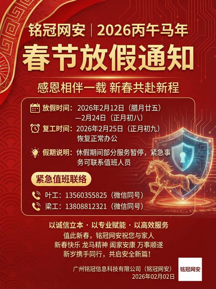 铭冠网安|2026丙午马年 春节放假通知