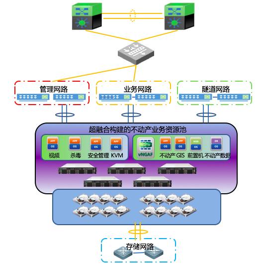 在方案设计上,长沙市国土局采用多台深信服超融合一体机,组成不动产业务集群,计算、存储、网络及安全资源全部以池化交付,满足国土局当前及未来一段时期内的业务使用需求。